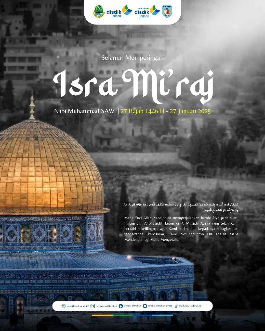 Selamat Memperingati Hari Isra Mi'raj 1446 H, semoga perjalanan spiritual Nabi Muhammad SAW selalu menginspirasi kita untuk selalu memperbaiki diri dan mendekatkan diri pada Allah SWT.