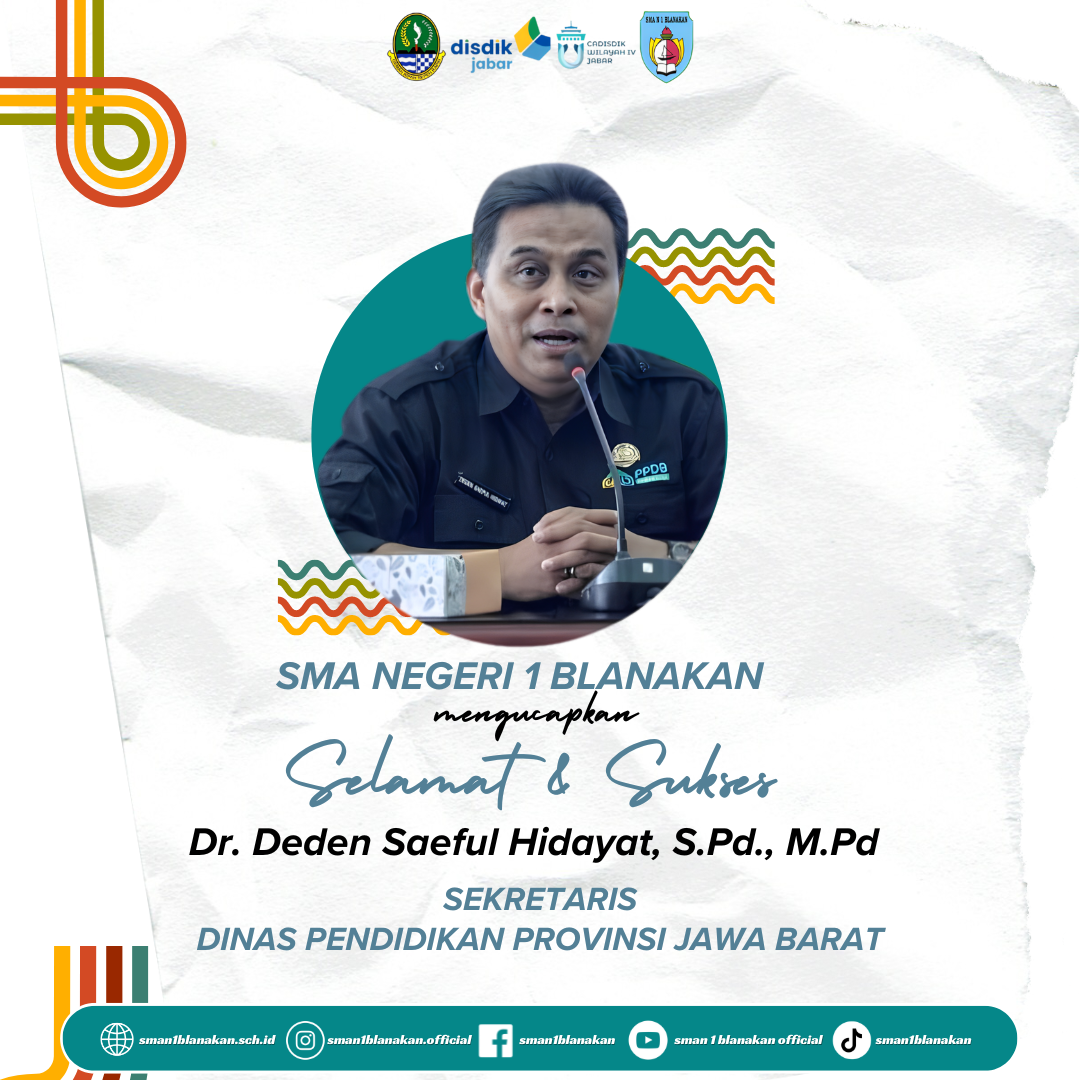 SMA Negeri 1 Blanakan mengucapkan Selamat & Sukses kepada Dr. Deden Saeful Hidayat, S.Pd., M.Pd. Sekretaris Dinas Pendidikan Provinsi Jawa Barat